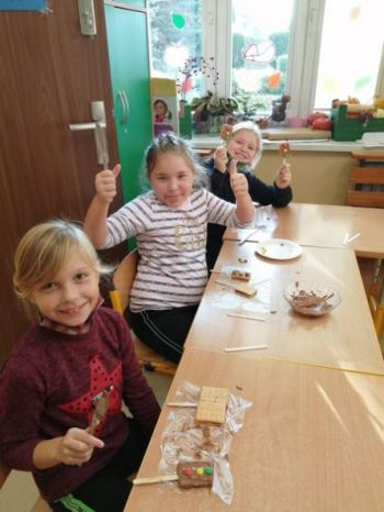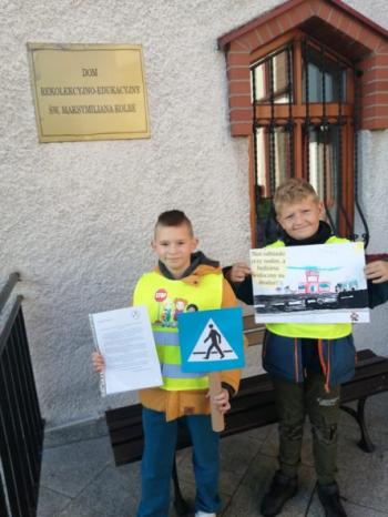 Dzieci przygotowały również prace plastyczne i plakaty o tematyce bezpieczeństwa, którymi wystroiły szkolne korytarze. Przeszły ulicami Harmęż, rozdając własnoręcznie wykonane ulotki. Odwiedziły ojców Franciszkanów i misjonarki Niepokalanej Ojca Kolbego, przekazując odblaski i list, w którym zwracają uwagę na bezpieczeństwo pieszych. Rozdawały też podobne materiały po mszach, a podczas warsztatów kulinarnych zrobiły słodkie sygnalizatory świetlne.