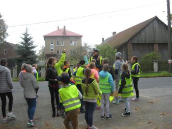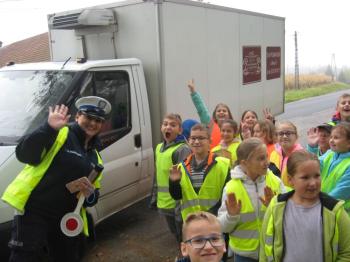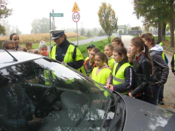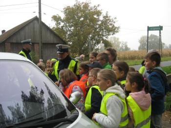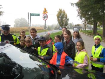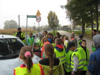 Kierowcy, którzy przejeżdżali przez Porębę Wielką musieli być mocno zdziwieni, kiedy zobaczyli, że patrolowi z drogówki towarzyszą dzieci w kamizelkach odblaskowych.