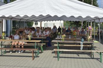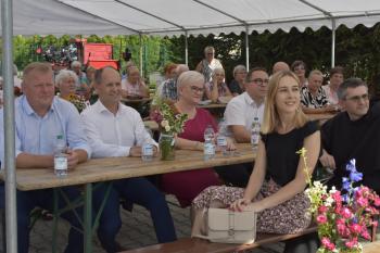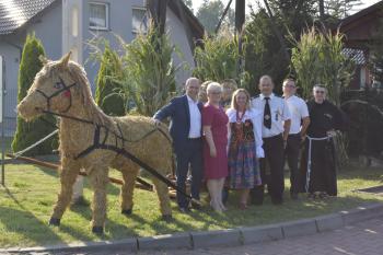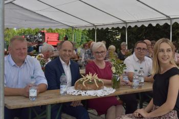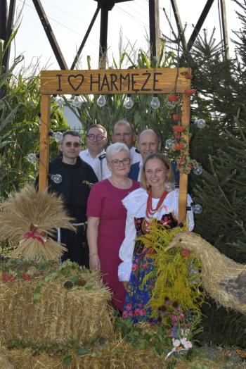 Wśród osób przybyłych do Harmęż na tegoroczne dożynki znaleźli się m.in.: wójt gminy Oświęcim Mirosław Smolarek wraz z małżonką, przewodniczący rady gminy Oświęcim Adam Nowotarski, radni gminni Daria Tyran i Aleksander Stachura, dyrektor OKSiR Gminy Oświęcim Weronika Sporysz oraz dyrektor Zespołu Szkolo-Przedszkolnego w Harmężach Bartłomiej Karolus. W tym dniu nie mogło również zabraknąć mieszkańców sołectwa.