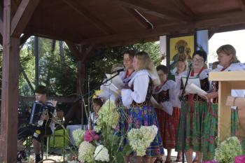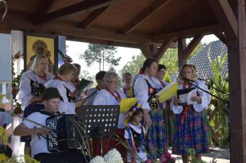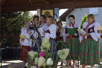 Kolejnym elementem obchodów Święta Polonów była część artystyczna, na którą złożył się występ pań z KGW w Harmężach. Była to, jak same określiły, prezentacja historyczna, ponieważ po raz pierwszy ich śpiew został ubogacony przez akompaniament akordeonu. Towarzyszył im Karol, uczeń Zespołu Szkolo-Przedszkolnego w Harmężach.