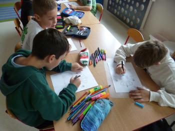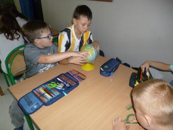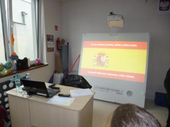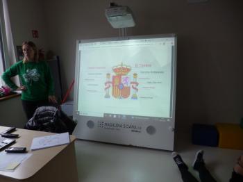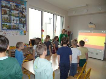 Pierwszym zadaniem z projektu „Europa i ja” było zapoznanie dzieci z symbolami narodowymi wybranego kraju. Dzieci poznały w prezentacji multimedialnej flagę, godło i hymn Hiszpanii. Uczniowie wyszukiwali położenia Hiszpanii w Europie na globusie, a także dowiedzieli się dlaczego godło tego kraju ma tyle koron. W odpowiedniej pozycji dzieci wysłuchały hymnu państwowego Hiszpanii. Ponadto uczniowie kolorowali dowolną techniką symbole narodowe Hiszpanii: flagę i godło które zostały zaprezentowane na świetlicowej gazetce.