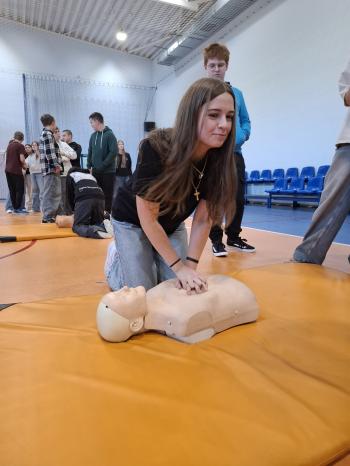 16 października nasza szkoła wzięła udział w ogólnopolskiej akcji bicia rekordu w jednoczesnym prowadzeniu resuscytacji krążeniowo - oddechowej. W wydarzeniu uczestniczyło 122 uczniów, którzy ćwiczyli na 5 fantomach.