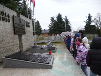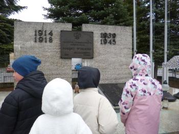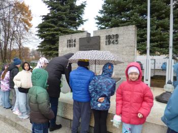 W dniu 10.11.2025 roku uczniowie klas I-III Szkoły Podstawowej w Porębie Wielkiej wraz z wychowawcami w trakcie zajęć świetlicowych udali się pod pomnik mieszkańców naszej miejscowości poległych w czasie I i II wojny światowej.