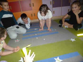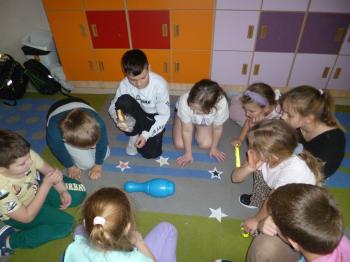 Uczniowie chętnie brali udział w zabawie „Gwiazdy prawdę powiedzą”, kręcąc kręglem wśród gwiazd z różnymi symbolami — palmami, różańcami, pieniędzmi czy innymi znakami szczęścia. Dodatkową atrakcją był rzut kośćmi i dodawanie cyfr, który pokazywał, co mogą im przynieść nadchodzące miesiące. Całym wróżbom towarzyszyła muzyka andrzejkowa, która dodawała energii i podkreślała radosny, nastrój wydarzenia.