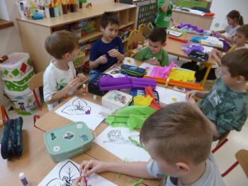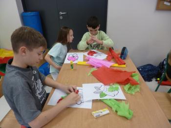 Podczas części plastycznej uczniowie wykonali barwne prace, wylepiając bibułą wybrane przez siebie hiszpańskie kwiaty. Gotowe prace ozdobiły gazetkę świetlicową wprowadzając do niej śródziemnomorski klimat.