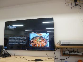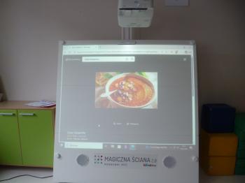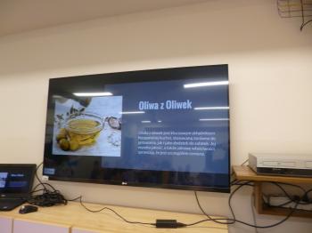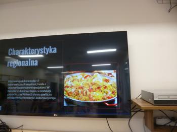 Podczas zajęć uczniowie obejrzeli prezentację multimedialną, dzięki której poznali charakterystyczne składniki wykorzystywane w kuchni hiszpańskiej oraz jej najbardziej znane potrawy.