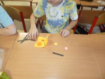 Podczas zajęć dzieci słuchały również piosenek o motylach, które wprowadziły radosny nastrój. Uczniowie chętnie rozwiązywali zadania interaktywne dotyczące motyli na platformie wordwall, utrwalając zdobytą wiedzę w formie zabawy. W części plastycznej dzieci wykonały motyle z przygotowanych szablonów. Ozdabiały je według własnych pomysłów papierem kolorowym oraz innymi materiałami plastycznymi. Gotowe prace zostały zaprezentowane na wystawie świetlicowej.