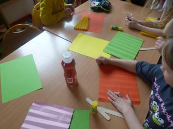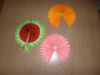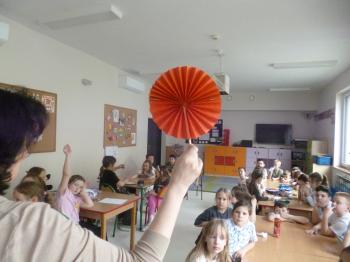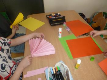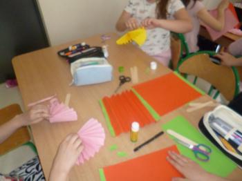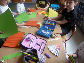W części praktycznej dzieci samodzielnie wykonały wachlarze z papieru kolorowego oraz szpatułek drewnianych. Prace były bardzo pomysłowe i estetyczne. Uczniowie wykazali się dużym zaangażowaniem, kreatywnością oraz starannością podczas wykonywania swoich prac. Na zakończenie zorganizowano wystawę świetlicową, na której zaprezentowano wykonane wachlarze.